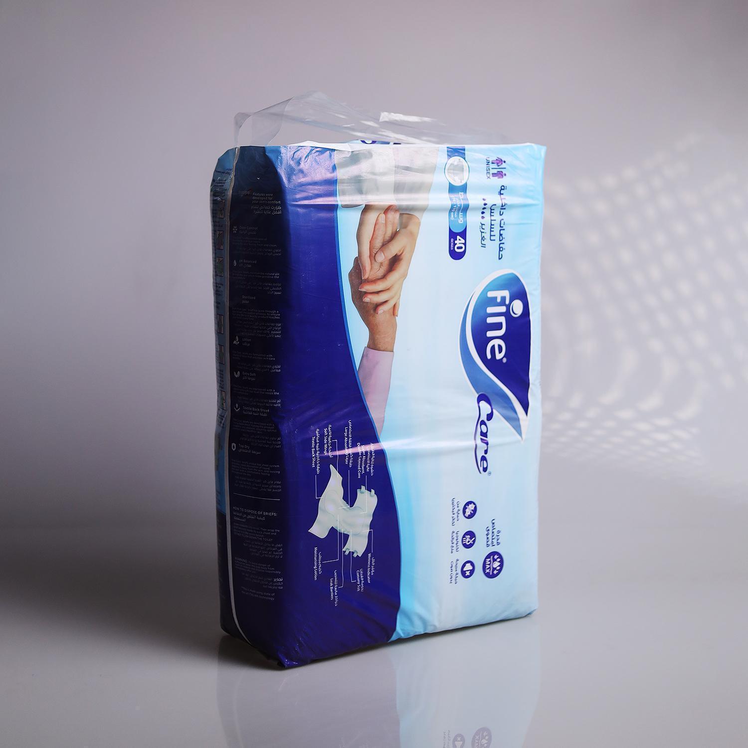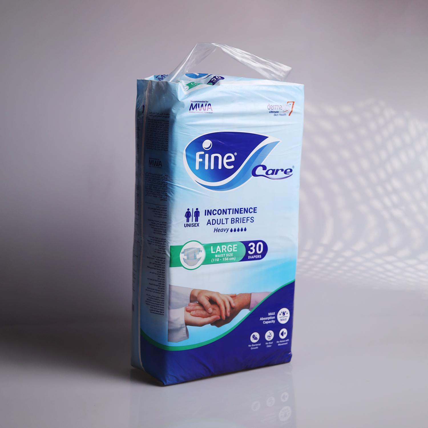 حفاضات فاين كير للكبار تتميز بتقنية ديرما برو 7 الحاصلة على براءة اختراع، وتتميز بامتصاصًا مثاليًا وراحة طوال النهار والليل، حيث تم تصميمها خصيصًا لتناسب محيط الجسم. مصمم بنسيج داخلي رقيق مزدوج الطبقات يوفر أقصى قدر من الامتصاص لضمان أقصى قدر من الحماية ومنع التسرب، بالإضافة إلى مكونات التحكم في الرائحة التي توفر الراحة والثقة أثناء الاستخدام الطويل. تم تصميم حفاضات فاين كير للكبار بطبقة خلفية من القماش توفر أقصى درجات الراحة ولا تصدر ضوضاء أثناء الحركة. حفاضات فاين كير للكبار هي المنتج الوحيد الذي يساعد على الحماية من العلامات السبعة لتهيج الجلد الناتج عن الحفاضات.