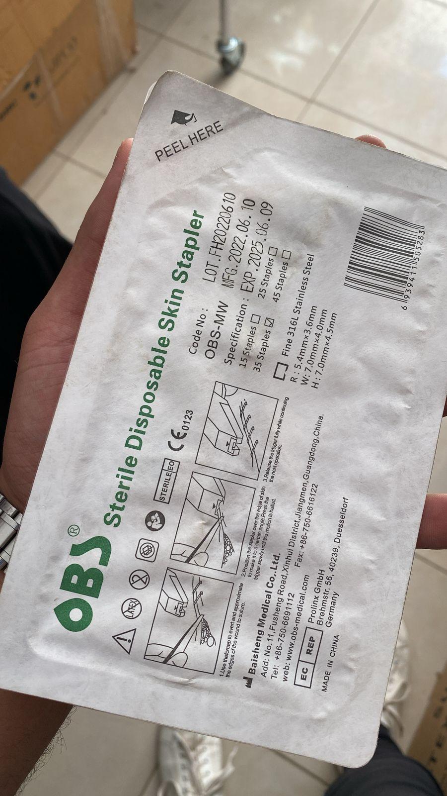 -دباسة جلدية من ميديكال شوب تستخدم في العمليات الجراحية المختلفة. -تستخدم لخياطة ثابتة على خط واحد ومحكمة ولا تسبب تسريبات خارجية أو عدوى. - دباسة جلد طبية لا تسبب تلفًا للنسيج وعند إزالة الشبكات يكاد الخط مكان الجرح لا يُرى. صيني الصنع