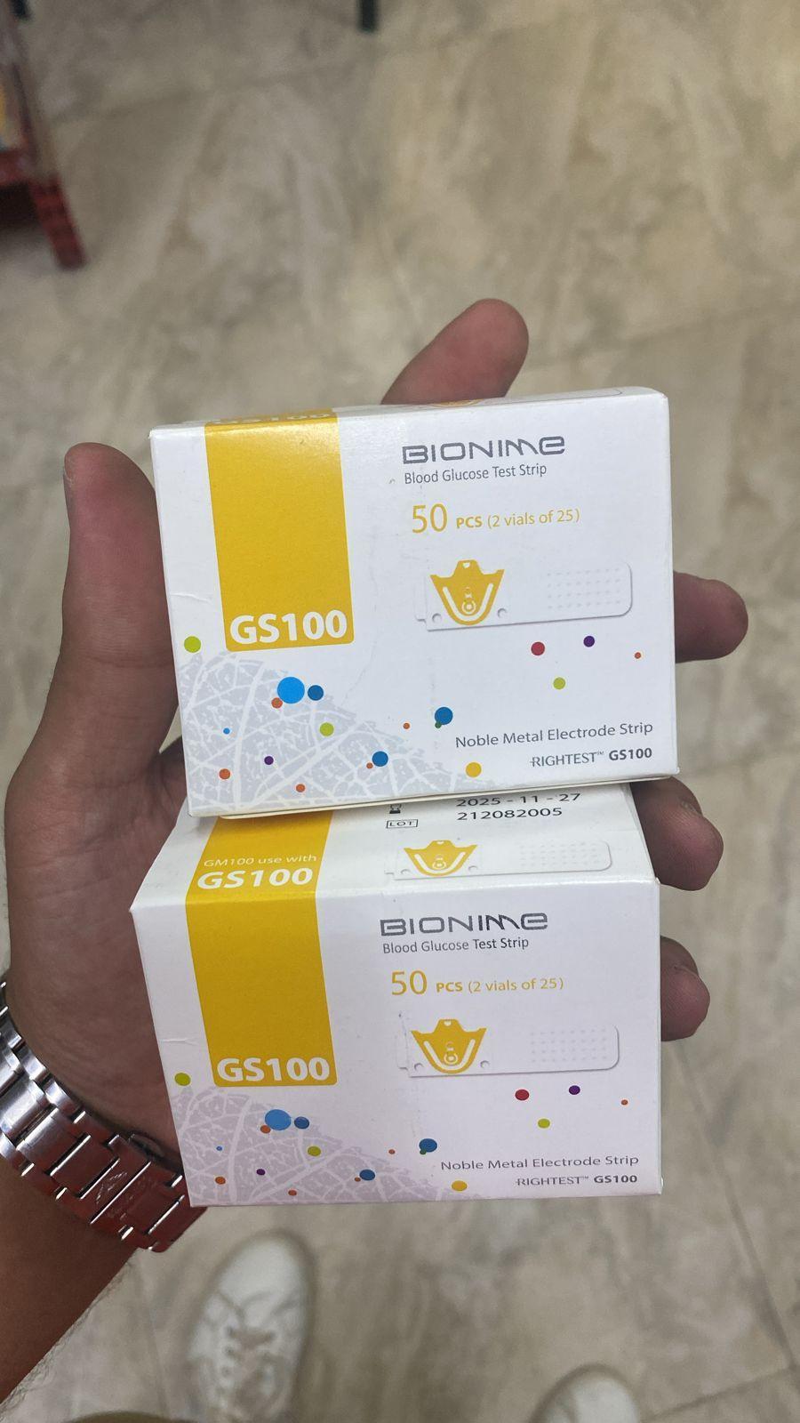 شرايط بايونيم هي أحد أرخص شرائط قياس السكر، واستخدامها سهل وبسيط للغاية، كما أن الشرائط لا تستغرق أكثر مِن خمس ثواني لمعرفة نسبة السكر في الدم.استخدم الجهاز والشرائط قبل وبعد تناول الوجبات لمساعدتك على مراقبة آثار الطعام على نسبة السكر في الدم.شرايط سكر صغيرة الحجم ومصنوعة من خامات ممتازة.شرايط بايونيم تتمتع بثقة يمكنك الوثوق بها تقيس مستوى السكر في الدم باستخدام عائلة أجهزة قياس Bionime GS.تحتوي علبة شرائط جهاز السكر على 50 شريط تحليل سكر.يتم إدخال الجزء الأبيض من الشريط داخل جهاز قياس السكر أما الجزء الأزرق المقابل له يمتص عينة الدم تلقائيًا.تاريخ شرائط تحليل السكر موضح على العبوة.تدعم شرائط تحليل السكر تكنولوجيا سحب عينة أوتوماتيكية الموجود في جهاز السكر.تقوم شرائط جهاز السكر بقياس نسبة السكر في الدم بعينة دم تصل إلى 0.5 ميكرون فقط لا غير.كما أنه يُعطي نتائج دقيقة للغاية وفي أقل مِن خمسة ثواني.أحد أرخص شرائط جهاز السكر التي تجمع بين الجودة والدقة والسرعة وفي نفس الوقت السعر المعقول.بإمكان كافة أفراد العائلة استخدام شرائط سكر دون الخوف مِن التلوث، حيث يحتوي الجهاز على زر لطرد شريط الاختبار دون ملامسته..